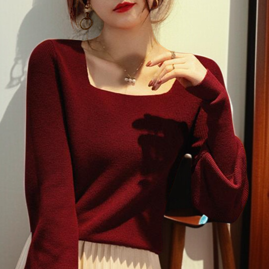 ジャンパー女性気質ニットボトムシャツスクエアネックランタンスリーブニットウェアエレガントなインナートップス