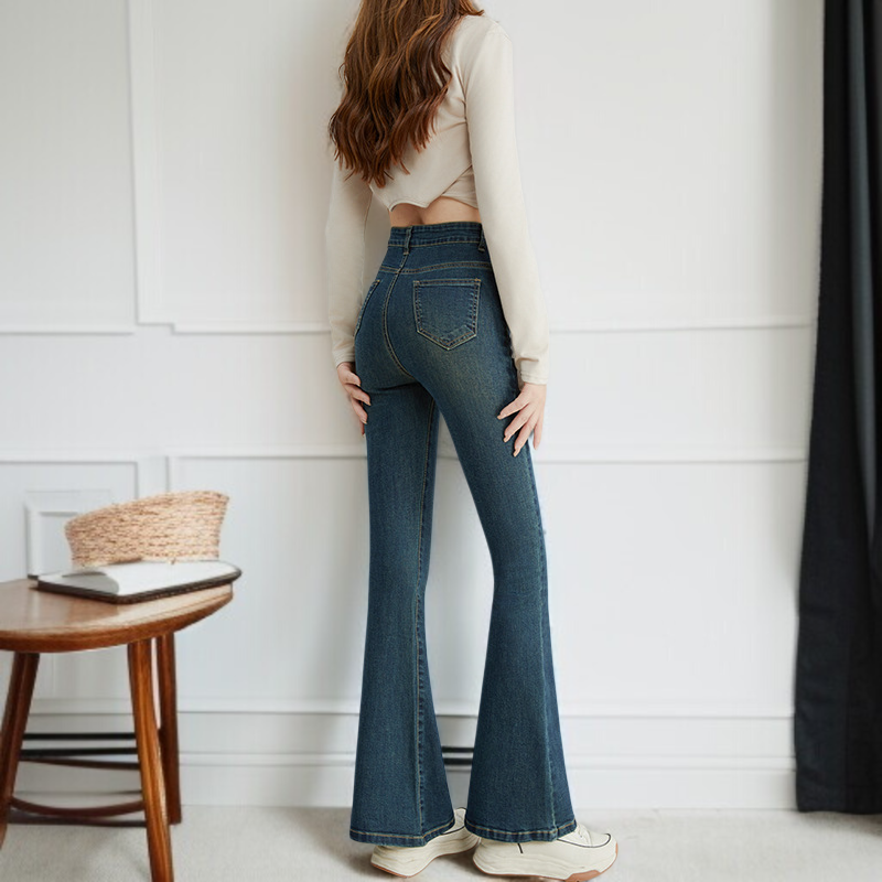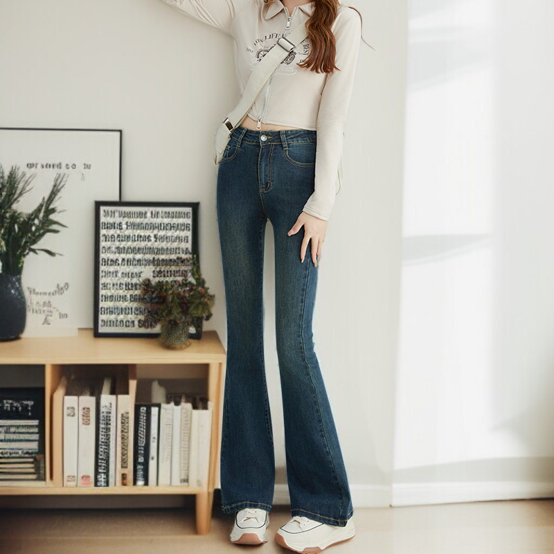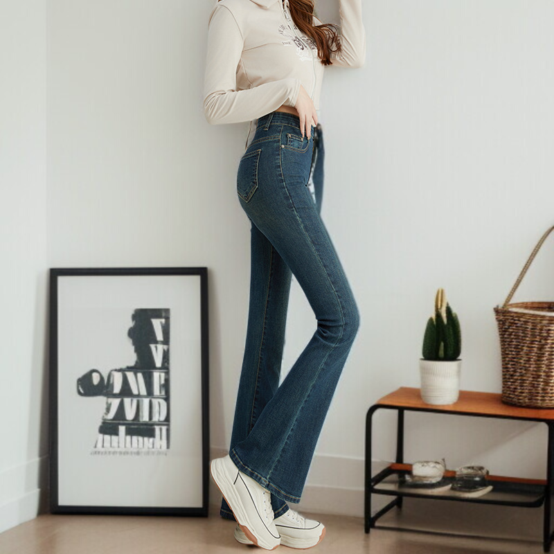 小さめハイウエストワイドジーンズ女性春春スリム細めマイクロフレアワイドパンツ